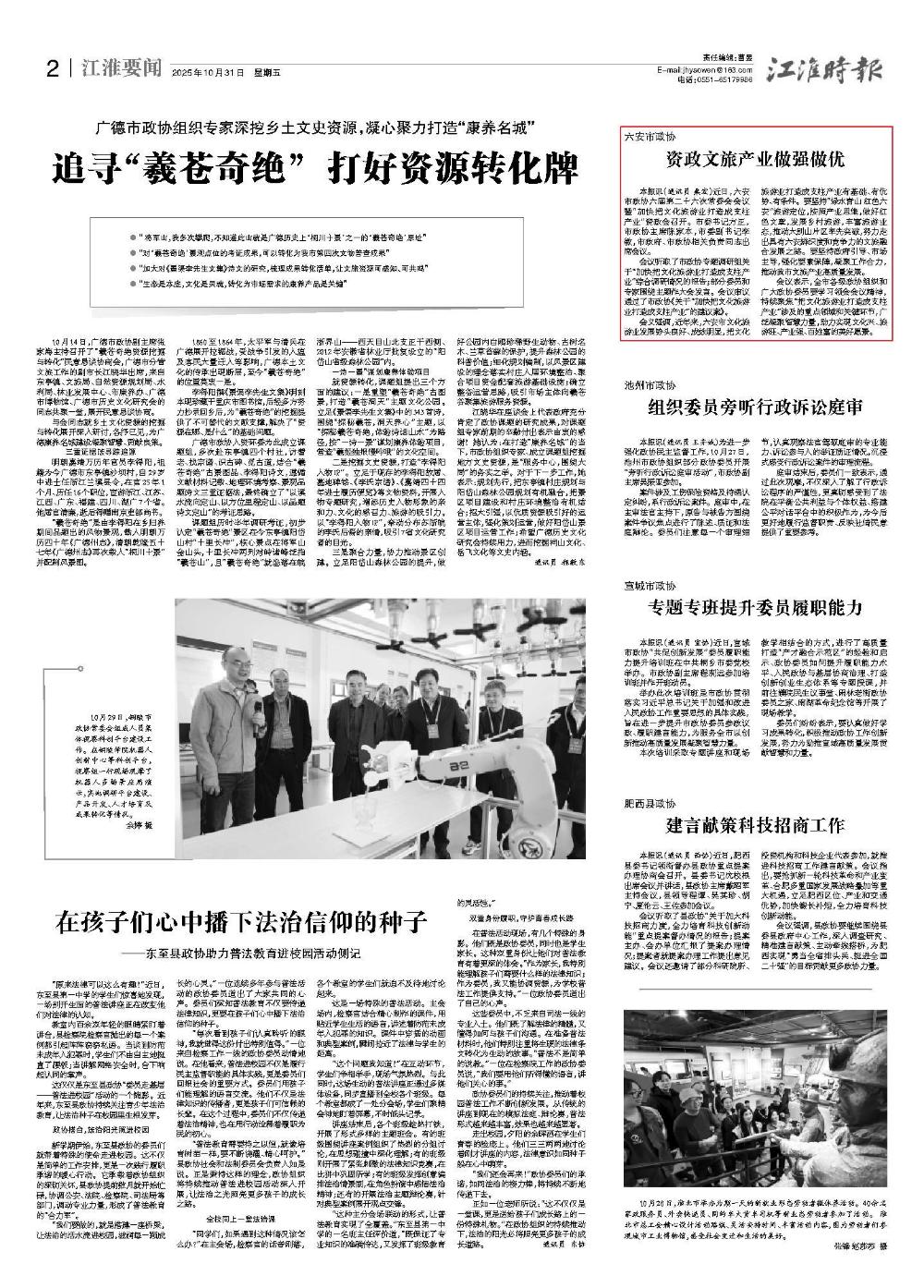 本报讯(通讯员 桑宏)近日,六安市政协六届第二十六次常委会会议暨“加快把文化旅游业打造成支柱产业”资政会召开。市委书记方正,市政协主席陈家本,市委副书记李敏,市政府、市政协相关负责同志出席会议。